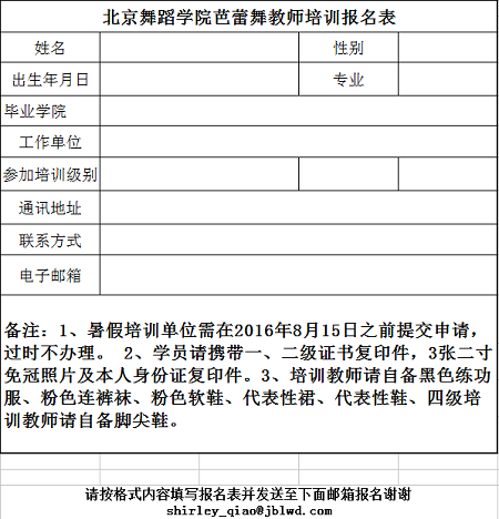芭蕾教师考级培训备注