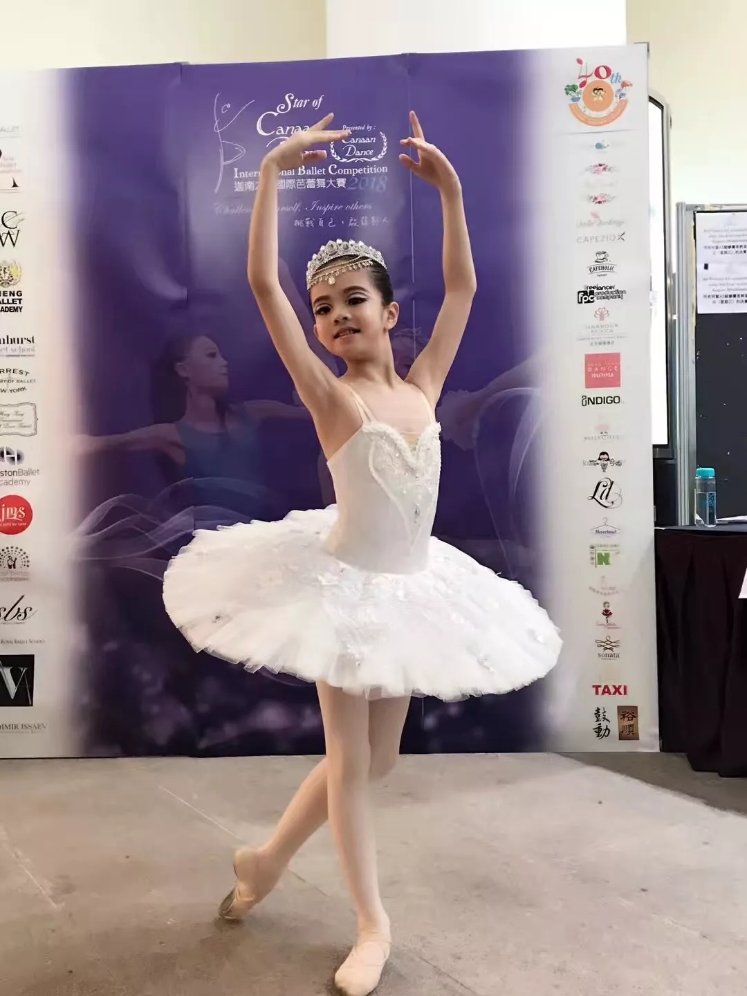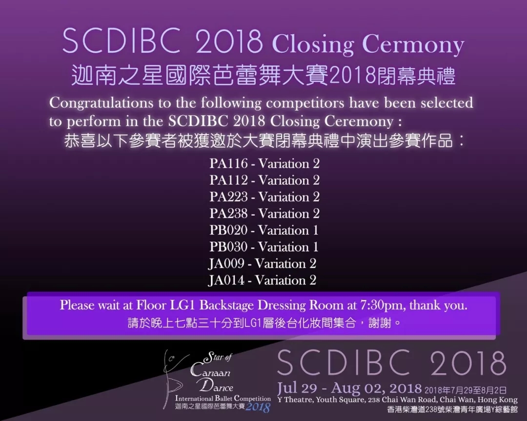 在昨晚的迦南之星国际芭蕾大赛的闭幕典礼上,每个组别中都会邀请2位选手参加当晚的gala,而金芭蕾舞蹈学员刘馨儿(PA112)的名字就在这个名单中,三百多名选手中只邀请八名参加,至高无上的荣誉,也说明我们学员的实力。