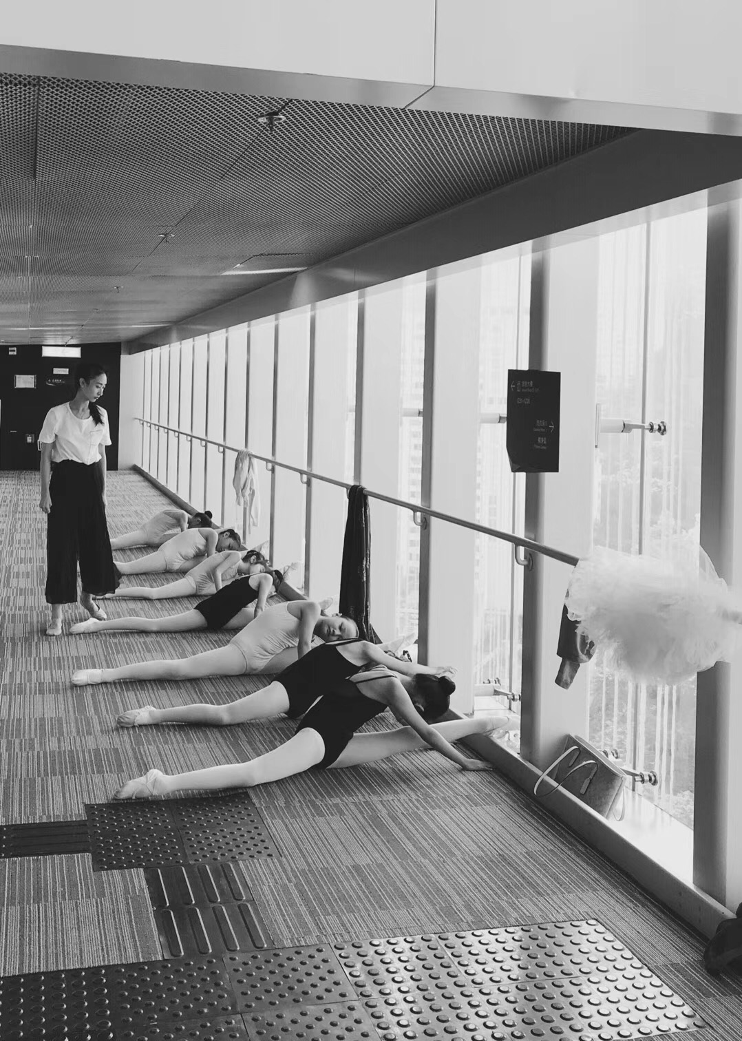 在酒店走廊进行赛前准备