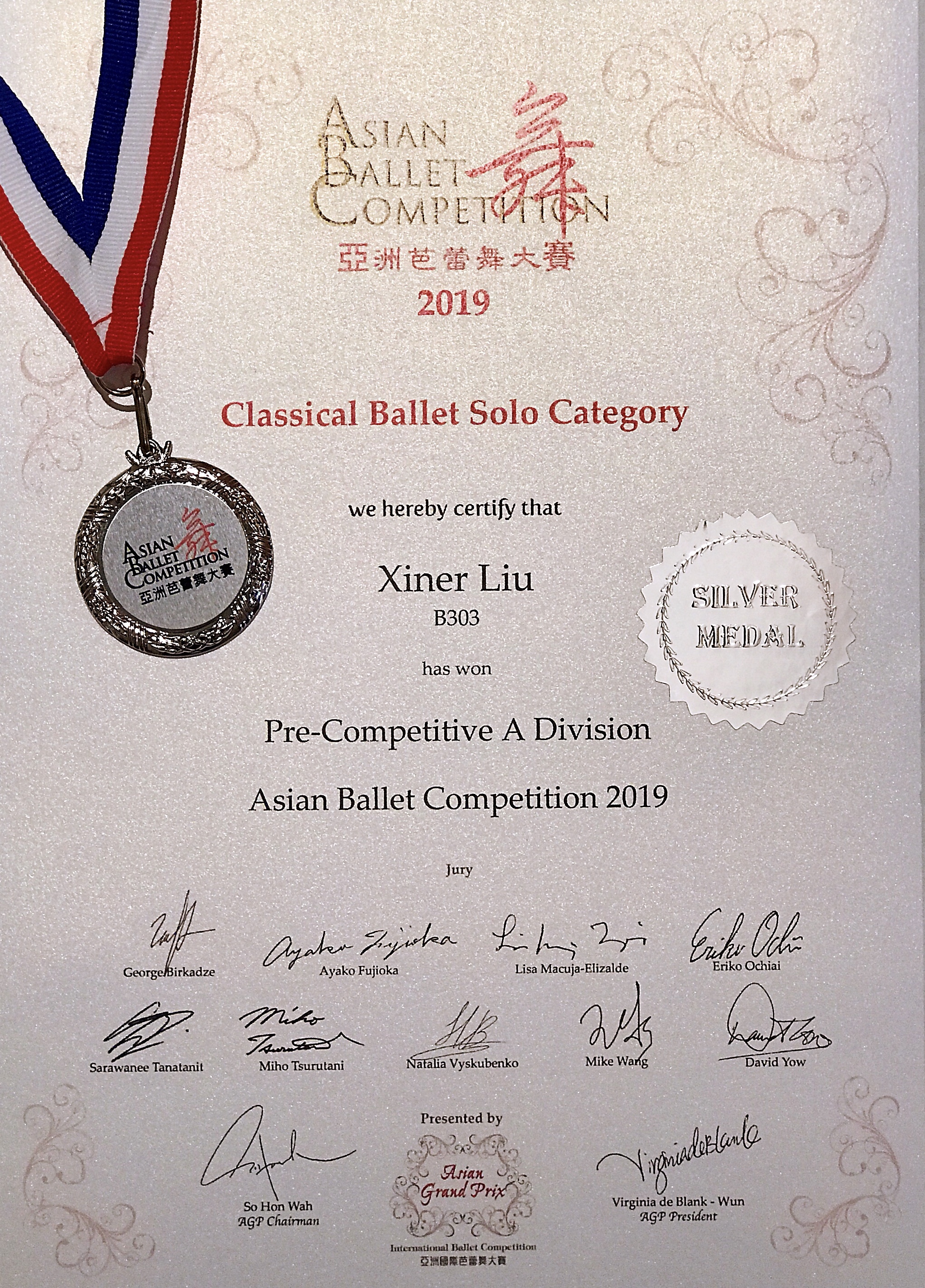 本周刚结束的2019ABC亚洲芭蕾舞大赛中,金芭蕾舞蹈学员刘馨儿荣获预备A组银奖。刘馨儿在今年的2019APG亚洲国际芭蕾舞上海赛区荣获了金奖,获得全额奖学金参加2019AGP夏令营,顺路去了一次2019ABC亚洲芭蕾舞大赛,凭借强劲的实力拿到预备A组的银奖,为自己的2019参赛之旅又添一枚奖牌。